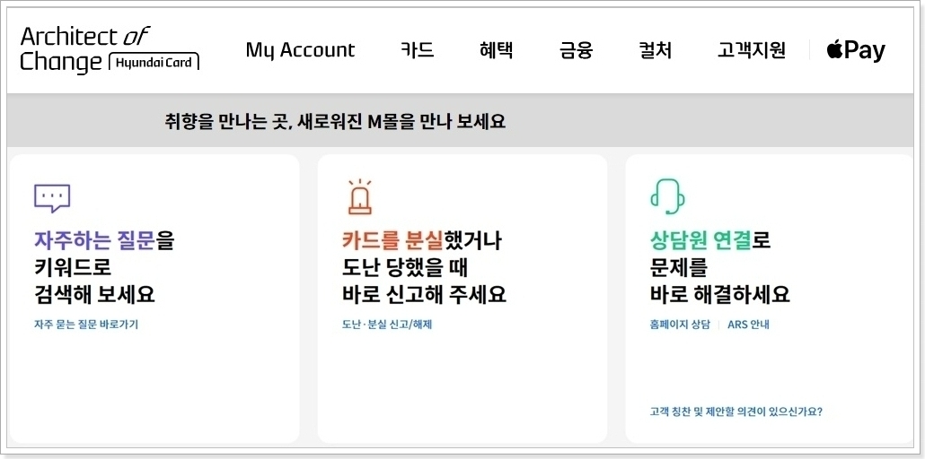 요즘은 전화보다 모바일 앱으로 더 빠르게 문제를 해결하는 경우도 많죠. 현대카드는 전용 앱이 있어서 다양한 업무를 앱에서 직접 처리할 수 있어요.