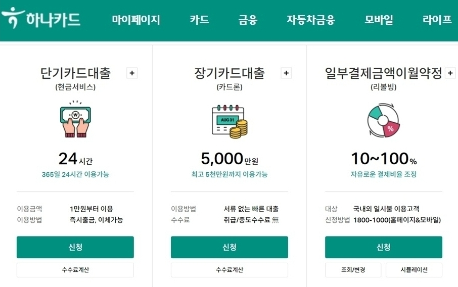 하나카드 카드론은 365일 연중무휴로 신청이 가능하다는 점이 정말 편리하더라구요. 모바일 앱이나 홈페이지, ARS(1800-1000, 1800-1111), 하나은행 ATM에서 모두 신청이 가능해요.