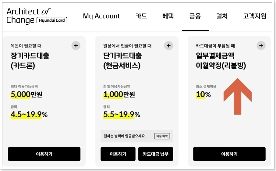 일부 현대카드는 발급 시 자동으로 리볼빙이 설정되는 경우도 있어서 주의가 필요해요. 특히 신규카드를 발급받을 때 ‘리볼빙 자동등록’ 항목에 체크가 되어 있는 경우가 있거든요. 이럴 땐 미처 인지하지 못하고 쓰다가 나중에 이자 부과 알림 받고 놀라는 분들이 많아요. 카드 신청 시 약관과 신청서 내용을 꼼꼼히 살펴보는 게 좋아요.