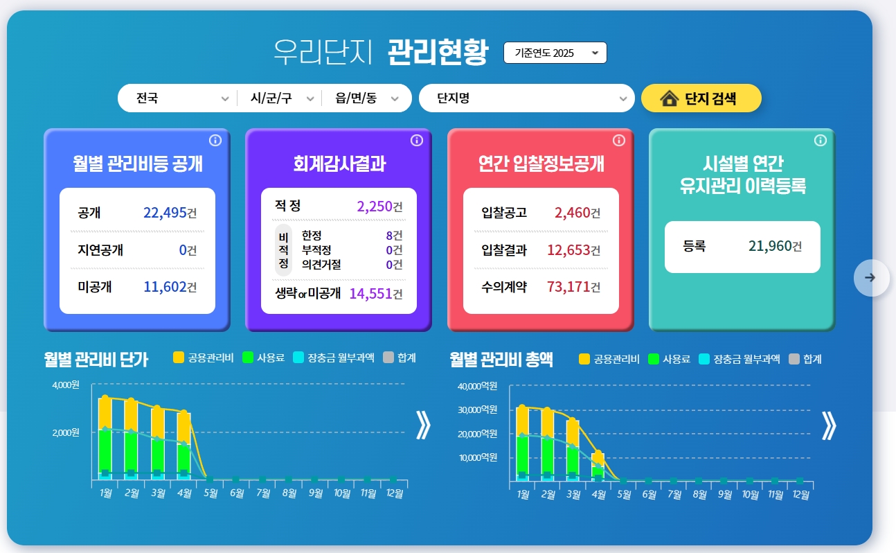 - 관리비, 공사비, 에너지 사용량 등 항목별 정보 제공